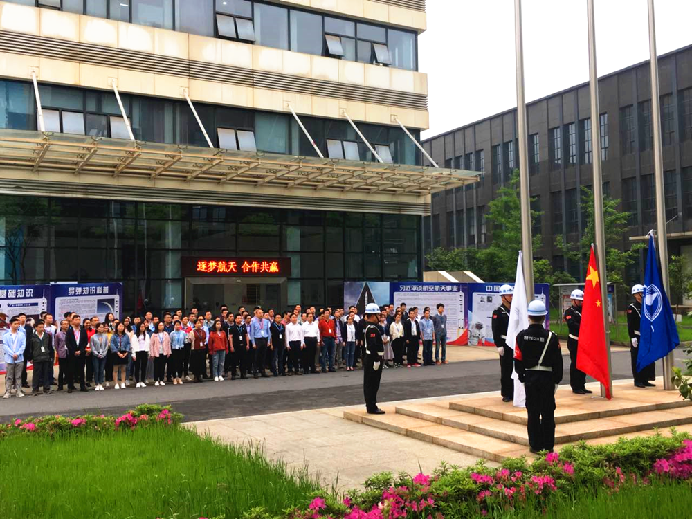 成都航天圍繞“逐夢航天 合作共贏主題舉行升旗儀式。公司領導班子、中層干部、團員青年、職能部門全體人員以及部分事業部、制造部員工約300人英姿颯爽,整齊列隊。在激昂的國歌聲中,五星紅旗冉冉升起,在雄壯有力的《航天科工之歌》中,藍、白色的集團公司司旗隨風舞動,彰顯了我國航天事業的蒸蒸日上。
